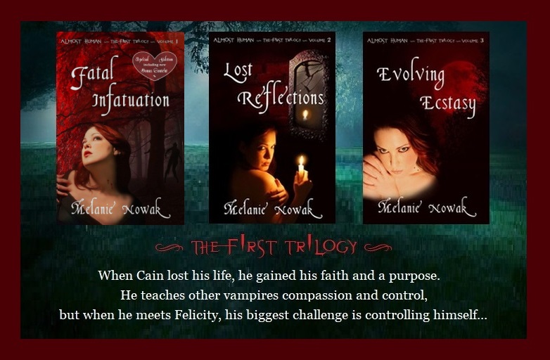 Cain is an elder vampire who displays quiet confidence even as he struggles to overcome sins of his past. Surprisingly, he found that in losing his life he gained his faith and a purpose. His mission: find the hostile vampires that inhabit this small college town, and educate them to live in peace with humans. Their leader, Sindy, is a wicked temptress who has set her sights on Felicity’s new friend Ben. She will be difficult to control, but after meeting Felicity, Cain’s most difficult task lies in controlling himself.